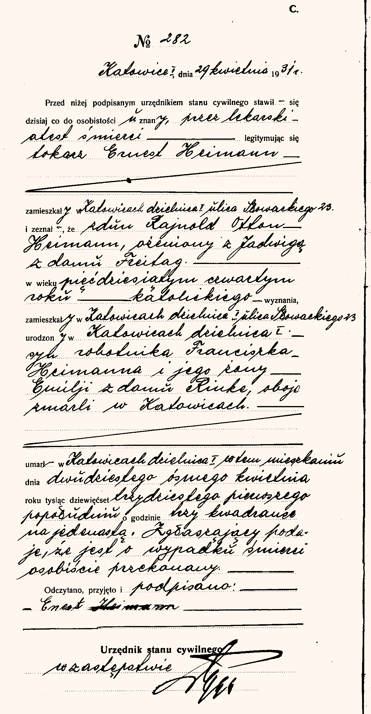 | Elżbieta Marta Heimann zd. Czakański *16.11.1910 Zawodzie †14.12.1988 Katowice | Rajnold Józef Heimann